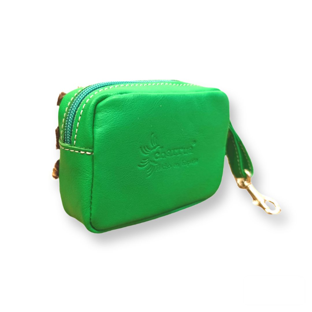 Mini monedero de cuero con un solo apartado , perfecto para colgar en tus bolsos , un complemento que además de práctico dará color y personalidad a tus bolsos.