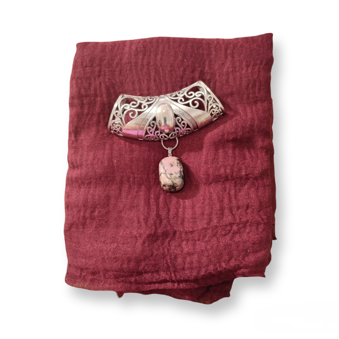 Un complemento con personalidad propia: anillo de pañuelo en zamak con una piedra natural colgante que aporta un toque único. Incluye pañuelo de viscosa 100% con textura arrugada, suave y ligero.