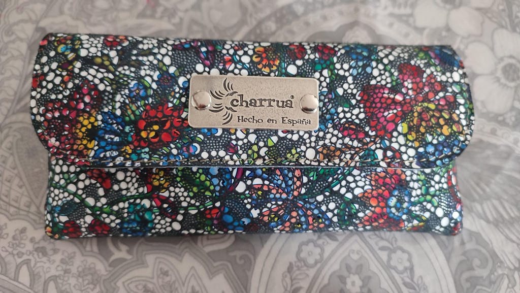 Es una carterita pequeña pero muy original y bonita. El cuero con el que está hecha es precioso. Se ajusta completamente a la descripción del producto.