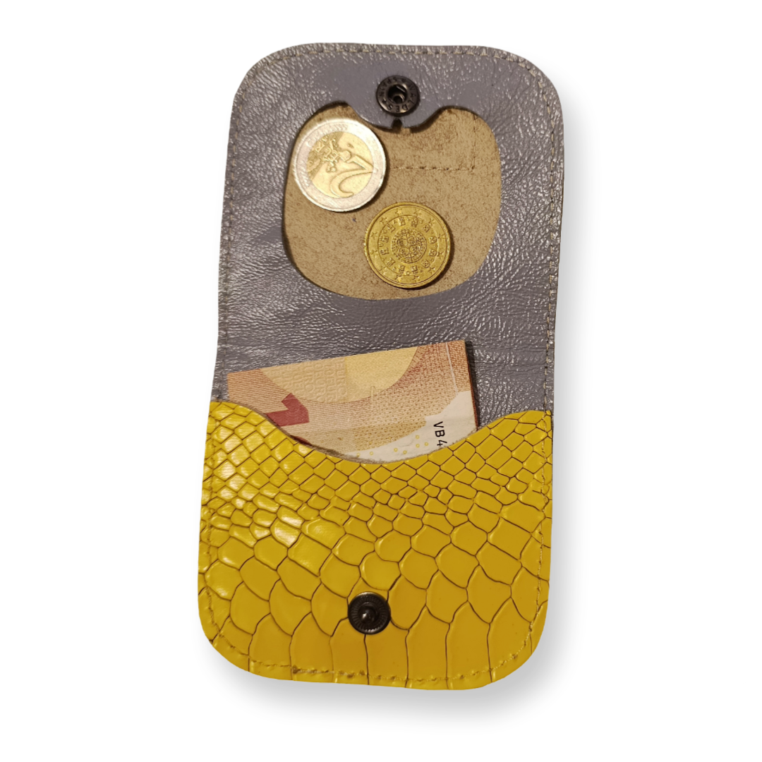 Su forma plana lo hace muy cómodo de llevar, se adapta perfectamente al bolsillo y apenas ocupa espacio. Gracias a su elaboración artesanal, es un monedero resistente y duradero, pensado para acompañarte durante muchos años.